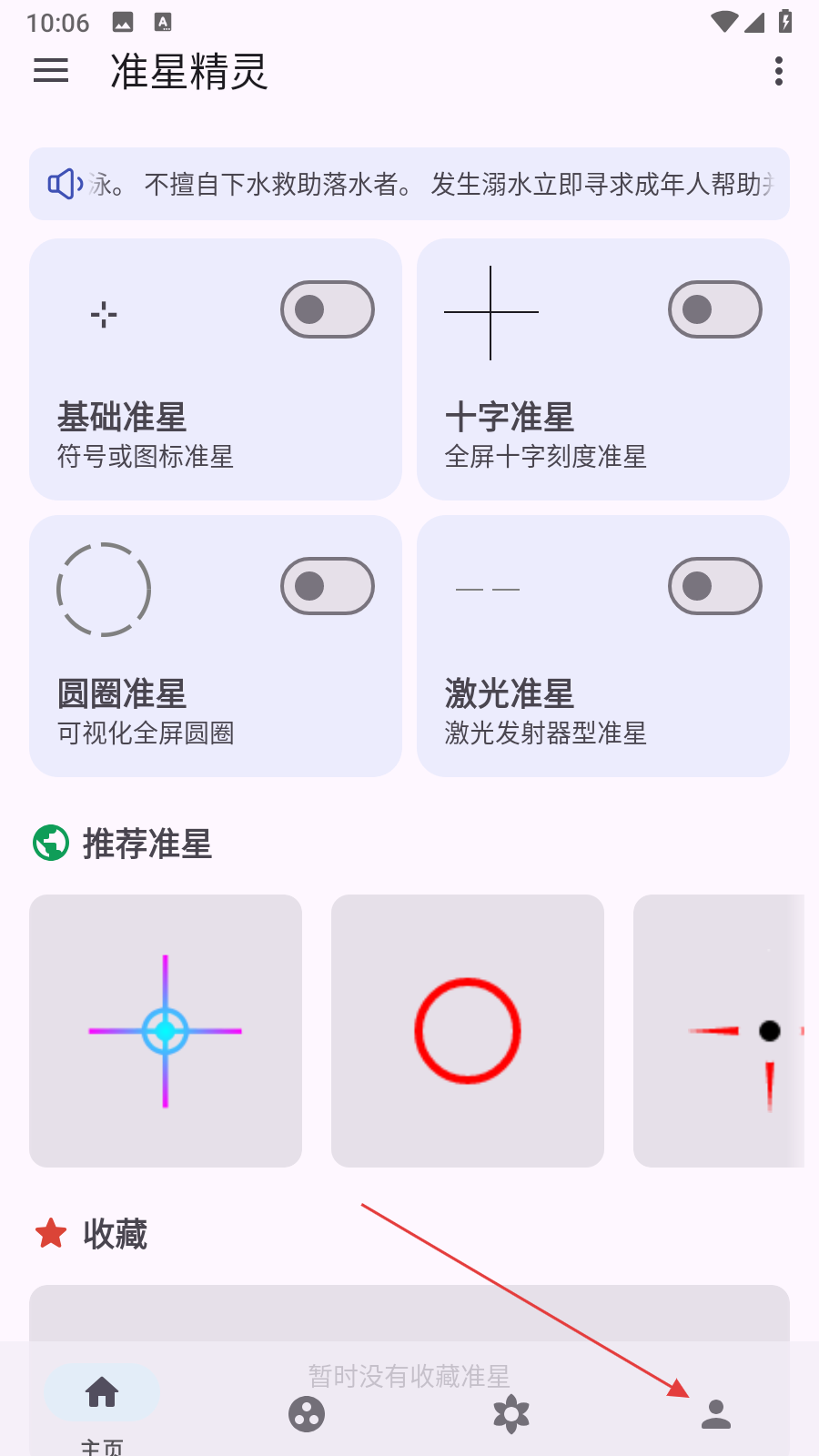 1、打开准星精灵应用,点击底部导航栏最右侧的用户选项,进入用户个人中心页面。