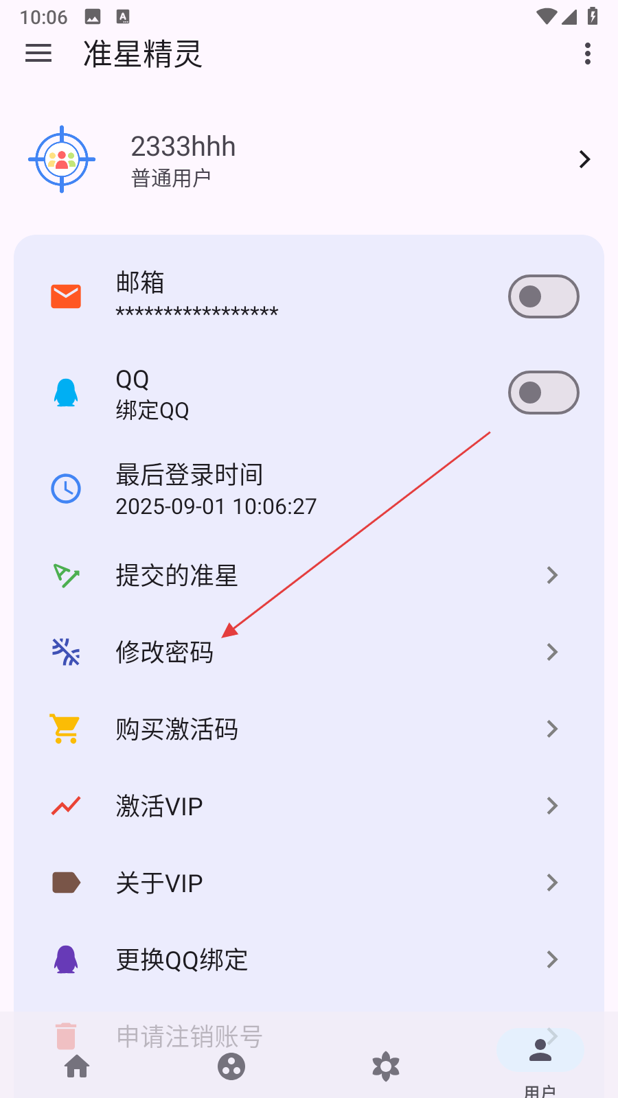 2、在用户个人中心页面中,找到修改密码选项并点击,进入修改密码界面。
