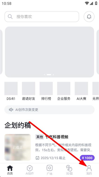 1、打开无界AI App,点击页面底部右侧的我的选项。