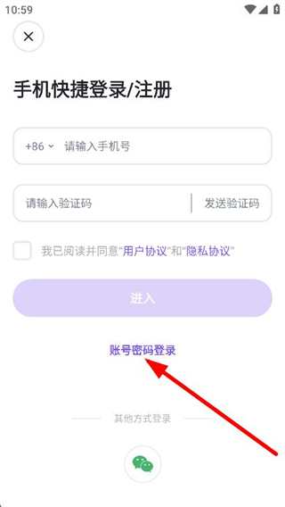 3、在登录选择页面,点击下方的账号密码登录选项。