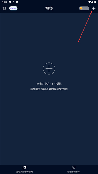 1、打开音频提取器的视频页面,点击页面右上角的+按钮,进入文件选择界面。