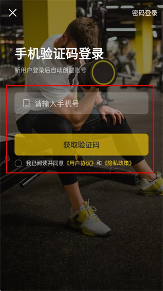 3、在手机验证码登录页面,输入手机号码,勾选协议后点击获取验证码。