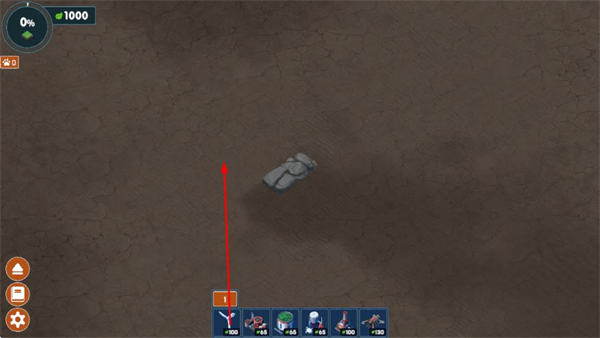 3、进入游戏主界面后,查看初始的荒芜地形,准备使用下方的道具进行地形改造。