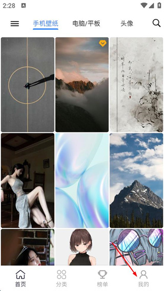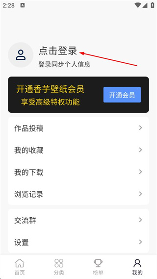 1、打开香芋壁纸APP,点击右下角我的,进入个人页面。