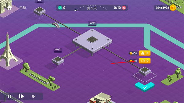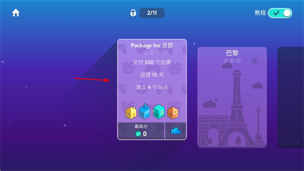 4、持续运营并搭建更多设施,完成包裹运输任务,查看关卡进度及获得的收益。