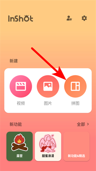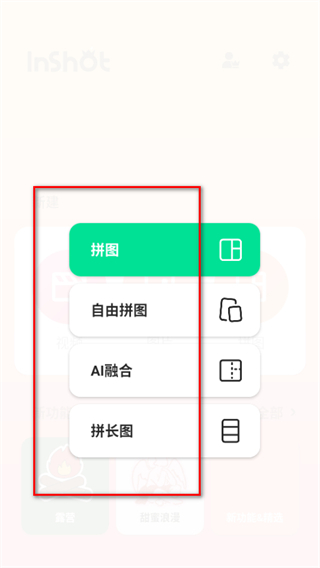1、打开InShot APP,在首页点击拼图选项,进入拼图功能页面。