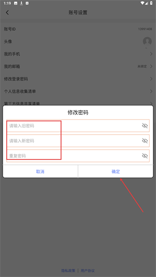 4、在修改密码弹窗中,输入旧密码、新密码,点击确定按钮。