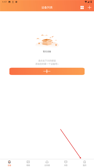 1、在设备列表页面,点击底部导航栏的我的选项,进入个人中心的操作页面。