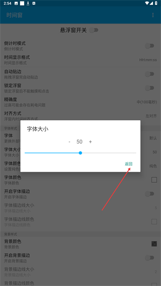 1、打开时间窗应用进入设置界面,在设置选项中下滑找到背景样式相关设置区域,点背景颜色选项。