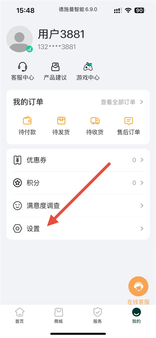 1、打开德施曼智能app,点击底部我的选项,进入个人相关界面。