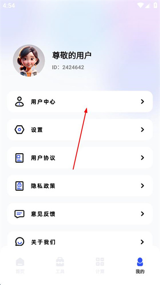2、在我的页面点击用户中心选项,进入用户中心页面。