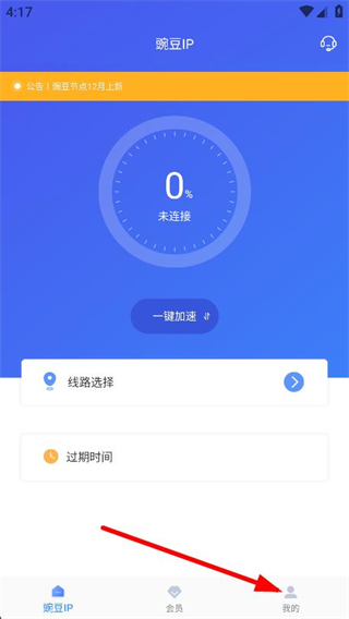 1、打开豌豆IP App,点击页面右下角的我的选项。