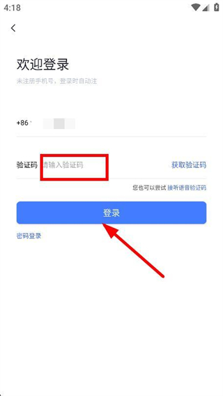 4、填写收到的短信验证码,点击登录,完成账号登录。