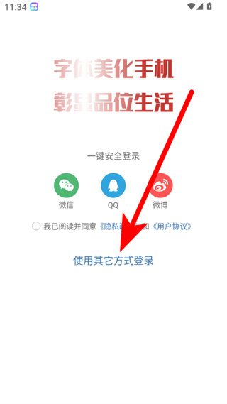 2、在登录界面,点击使用其它方式登录,进入账号登录页。
