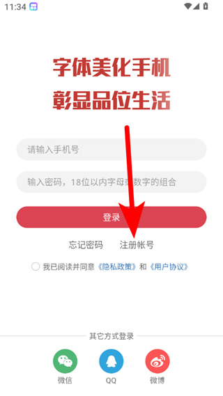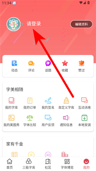 1、在字体美化大师我的页面,点击请登录选项,进入登录界面。