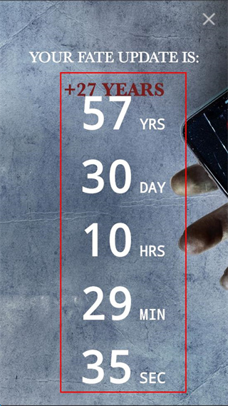 4、观看完成后,界面显示命运更新信息,可查看增加的年限及具体倒计时数据。