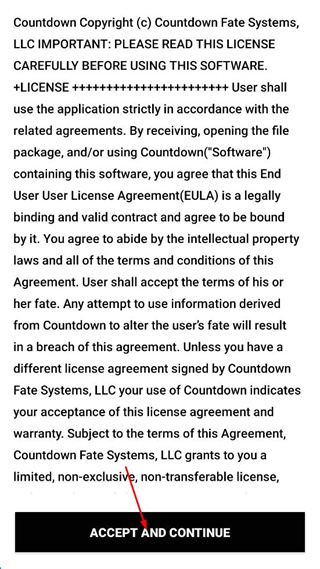 1、点击“ACCEPT AND CONTINUE”按钮,进入倒计时界面。