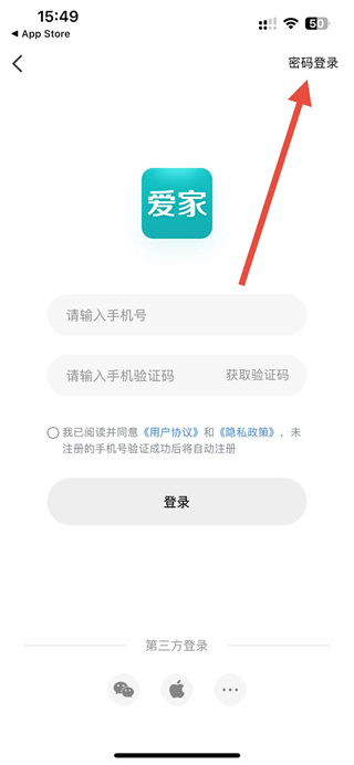 2、进入登录页面后,找到右上角的密码登录选项并点击,切换至密码登录的输入界面。