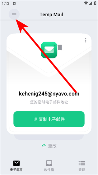 1、在无限邮箱主界面,点击左上角菜单按钮,展开功能选项列表。