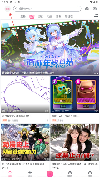 1、打开哔哩哔哩,点击页面左上角的头像区域,弹出登录相关选项窗口。