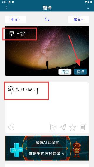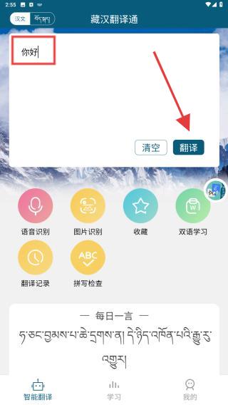 1、智能翻译功能,轻松实现藏语到汉语和汉语到藏语的翻译;