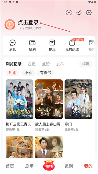 1、需要打开河马剧场app,点击底部我的按钮进入个人页面。