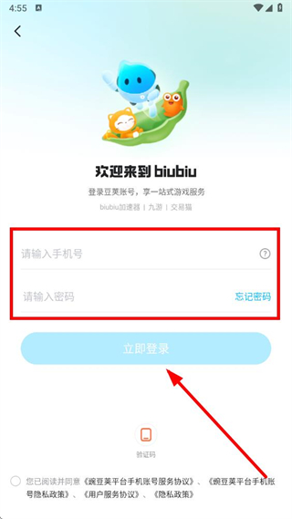 3、也可点击账号密码选项,切换为手机号和密码的登录方式,点击立即登录按钮,即可完成登录操作。