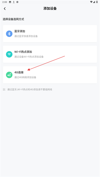 3、在选择添加方式的页面内,点击4G连接的按钮。