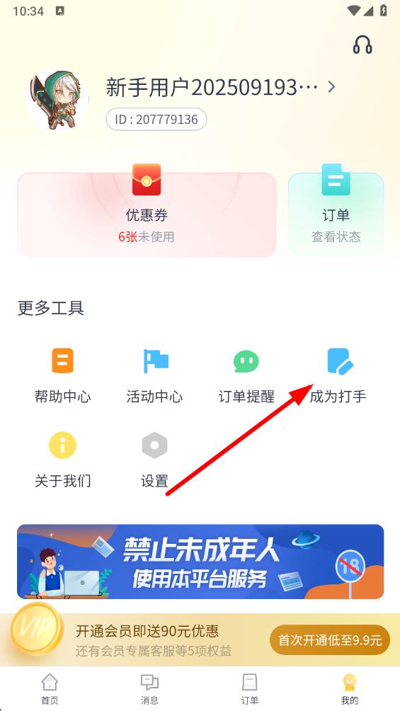 2、在个人界面的更多工具板块中,点击成为打手选项,进入成为打手的申请流程页面。