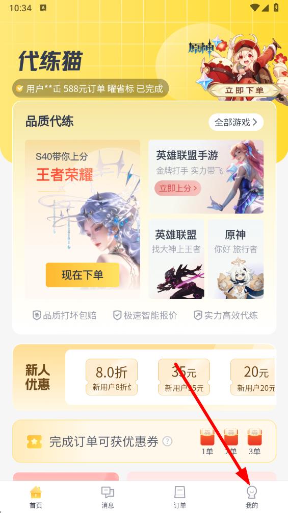 1、打开代练猫app,点击底部导航栏最右侧的我的选项,进入个人界面。