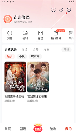 2、进入剧场推荐的界面内,选择并点击要播放的短剧内容。