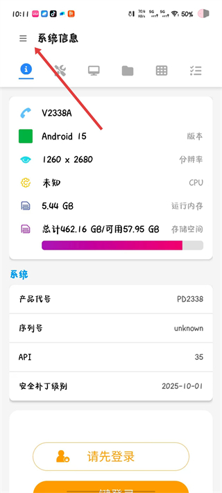 2、连接成功后,点击页面左上角的菜单按钮,展开功能选项列表。
