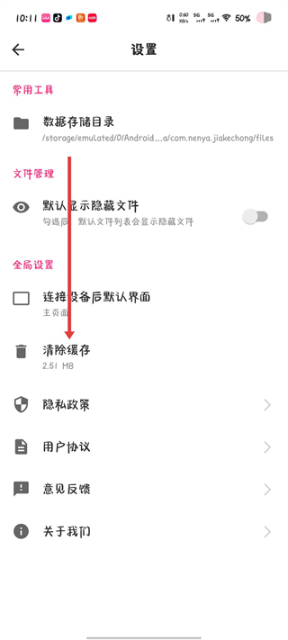 4、在设置界面的全局设置区域,找到清除缓存选项,点击即可完成。
