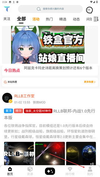 1、打开铁锈盒子主界面后,点击底部导航栏的我的选项。