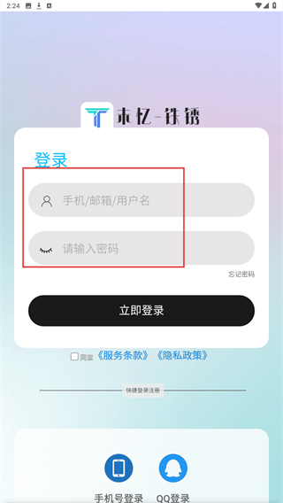2、进入登录页面后,输入手机/邮箱/用户名、密码。