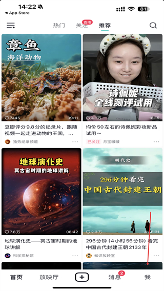 1、推荐页:下拉刷新,算法根据观看时长、互动行为动态调整内容权重,类似抖音推荐逻辑。