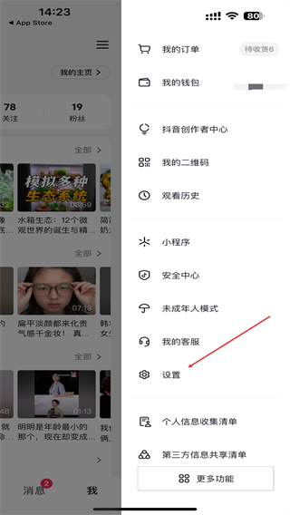 3、在右侧展示出的菜单栏中,点击设置的按钮。