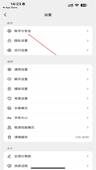 4、在设置的界面内,点击上方账号与安全的按钮。