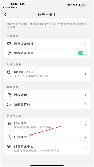5、在账号与安全的页面内,点击注销账号的按钮即可。