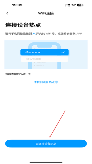 4、在连接设备热点页面内,点击下方去连接设备热点即可。