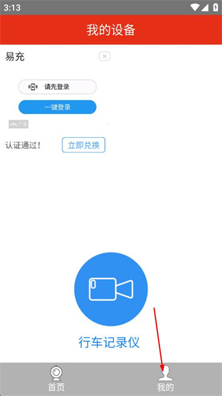 2、进入我的设备界面,找到页面底部的我的选项,点击该选项进入登录相关页面。