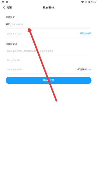 3、在找回密码页面中,在输入框中输入对应信息完成找回密码的操作。