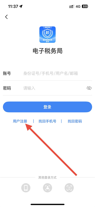 2、在登录页面点击用户注册选项,进入用户注册页面。