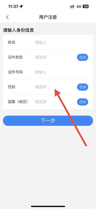 4、在身份信息输入页面输入个人信息,点击下一步,按提示完成后续操作,即可完成电子税务局注册。