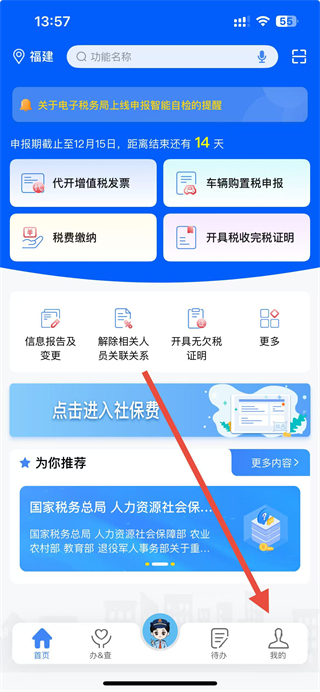 2、在电子税务局首页中吗,可与点击顶部我的按钮,进入到我的主页面中。