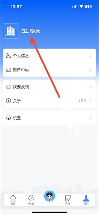1、在电子税务局app我的页面点击立即登录选项,进入登录页面。