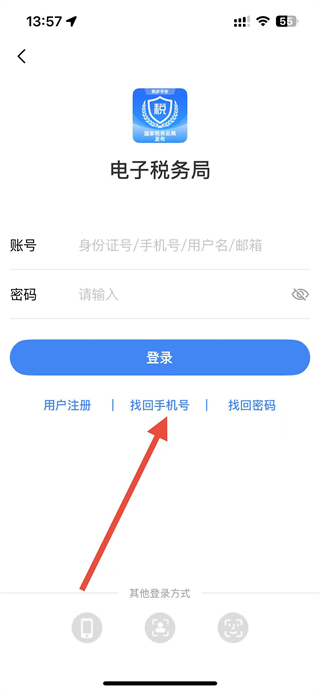 3、在登录界面,点击找回手机号选项,进入找回手机号的信息填写页面。