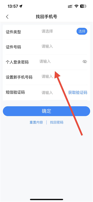 4、在页面选择证件类型,输入证件号码等,获取验证码后,点击确定,完成手机号找回操作。