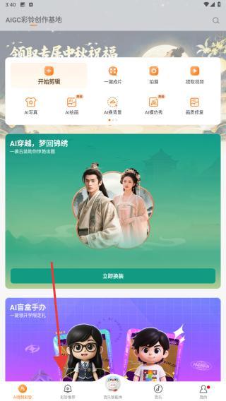 1、启动爱音乐APP,在首页下方的导航栏中点击彩铃推荐的标签进行切换。