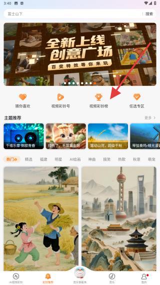 2、进入到彩铃的界面内,点击视频彩铃榜的按钮。